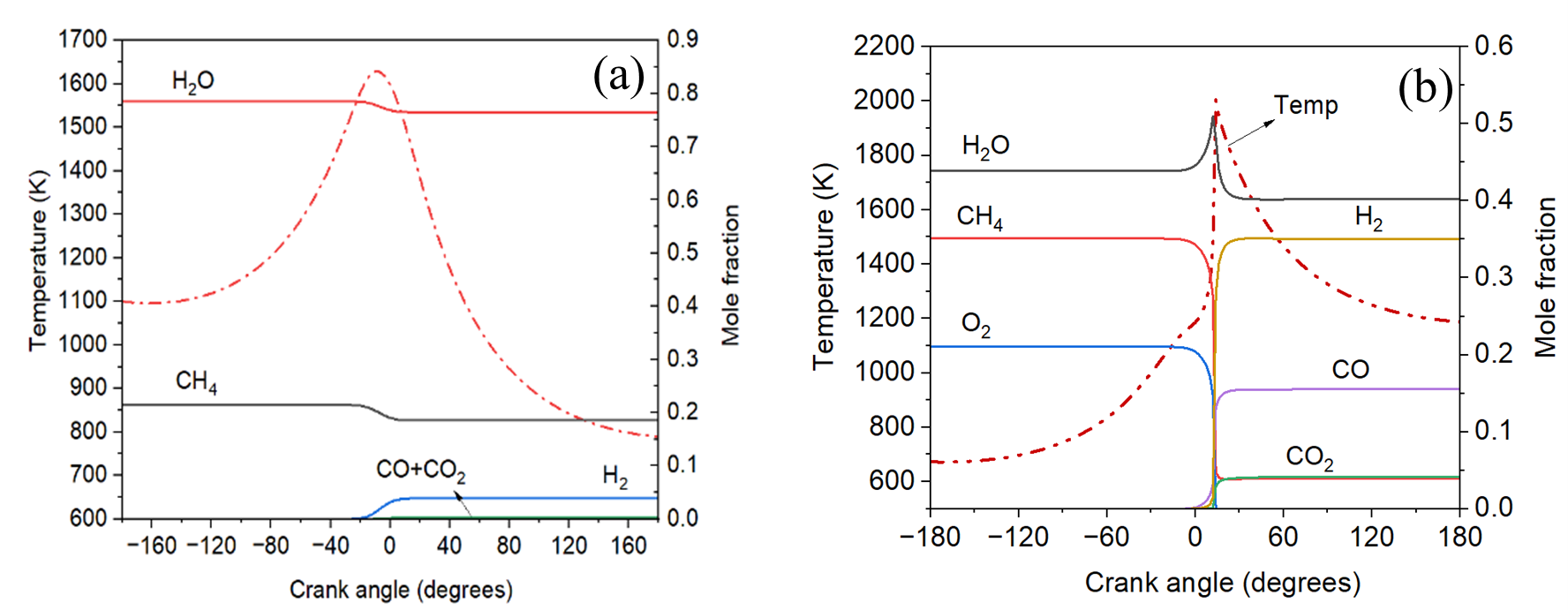 (b) case of ATR at N = 3000 RPM, T_intake = 673 K, P_intake = 1 bar, H2O/CH4 = 0.75, O2/CH4 = 0.6