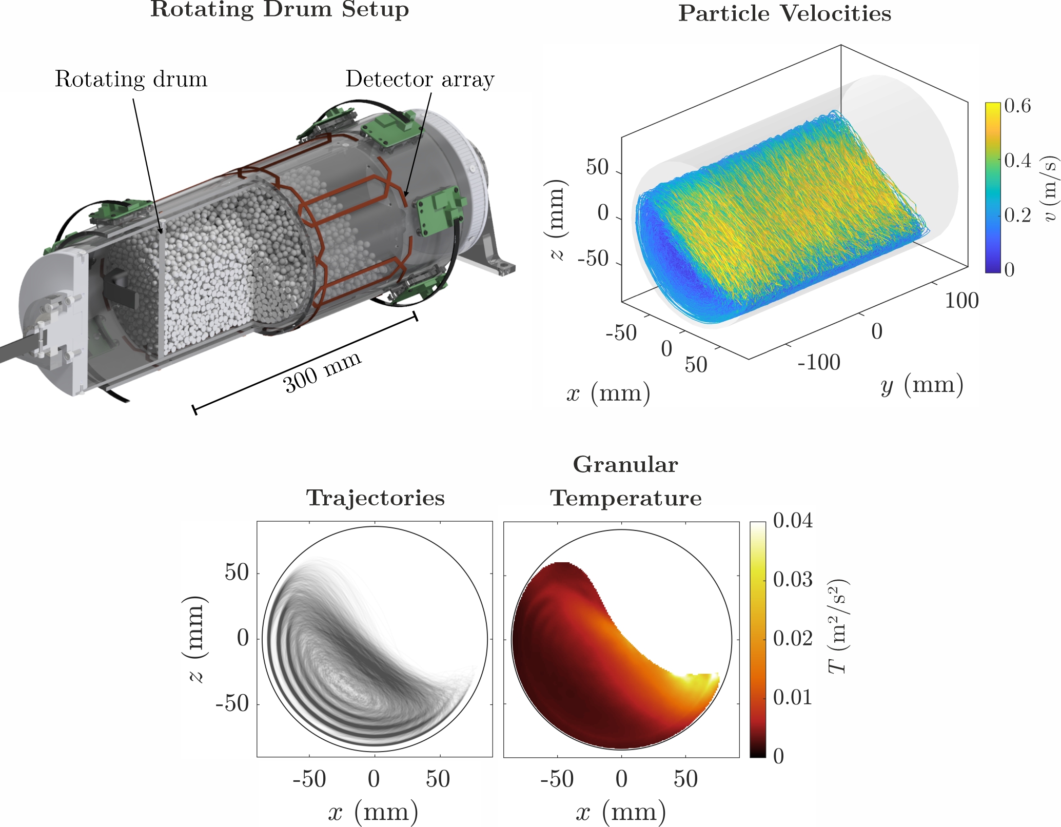 The opacity of granular materials impedes the visual observation of three-dimensional (3D) particle motion in such devices. Tomographic techniques such as magnetic resonance imaging can be used as a natural alternative to optical means.5 However, they come at the cost of long acquisition times and without the ability to observe individual particle motion.3 To overcome these limitations, a novel technique referred to as Magnetic Resonance Particle Tracking (MRPT) has been introduced recently.6 MRPT enables the measurement of multiple particle trajectories in three-dimensional granular systems at a spatiotemporal resolution of a few micrometers and milliseconds.