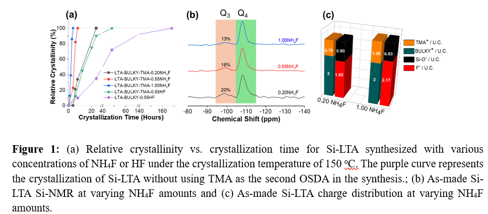 4F concentration. Crystallization times were reduced from 24 hours to 4 hours (Si-LTA), 96 hours to 36 hours (Al-LTA), 240 hours to 6 hours (ZSM-5), and 24 hours to 3 hours (Si-*BEA). Additionally, increasing NH